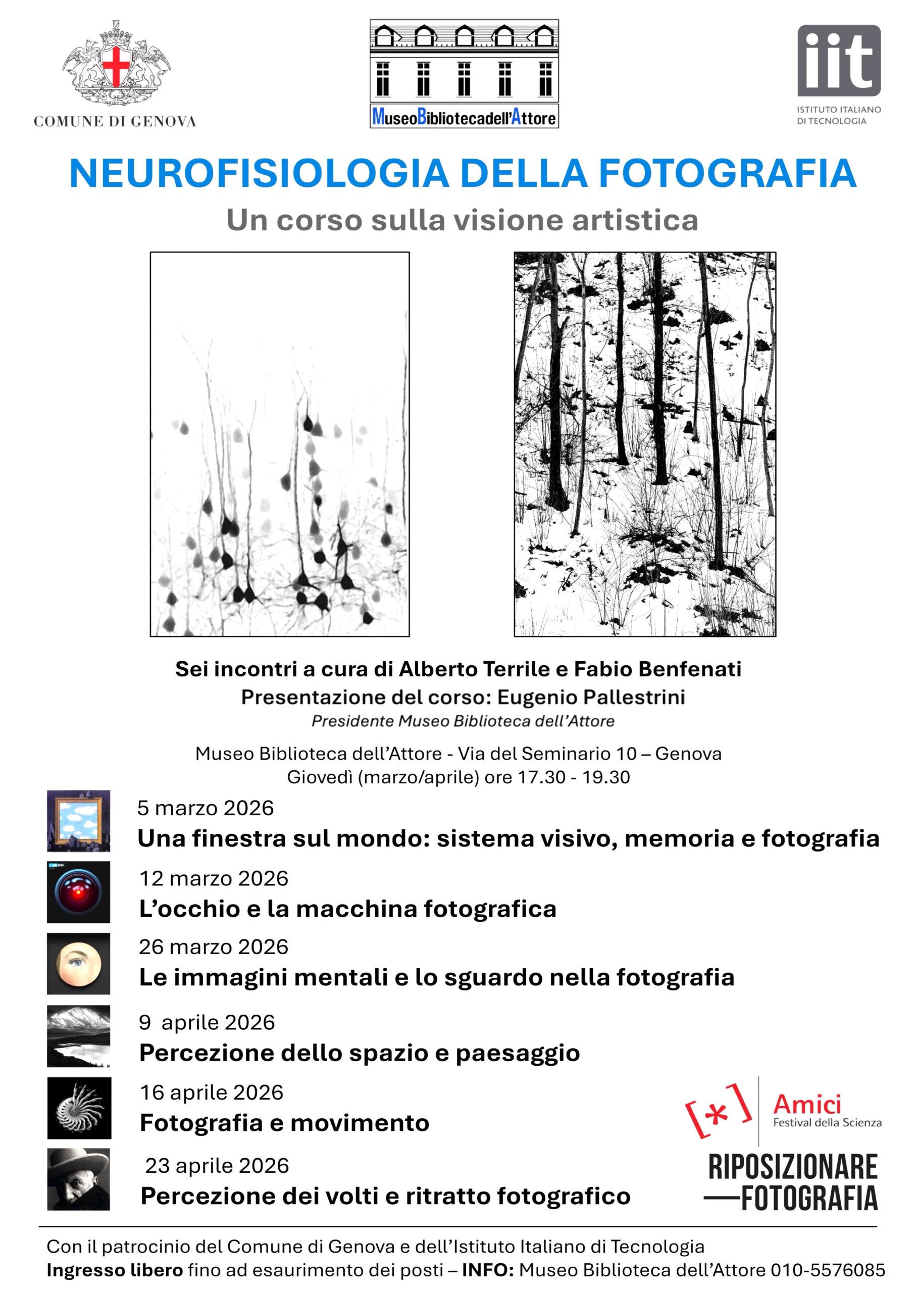 Il Museo Biblioteca dell’Attore, con il patrocinio del Comune di Genova e dell’Istituto Italiano di Tecnologia, ospita il corso “Neurofisiologia della fotografia. Un corso sulla visione artistica”, a cura di… Leggi tutto: Neurofisiologia della fotografia. Un corso sulla visione artistica al Museo Biblioteca dell’Attore (marzo–aprile 2026) - Presentazione del volume: In sacrificio. Il personaggio di Ifigenia tra teatro e cinema