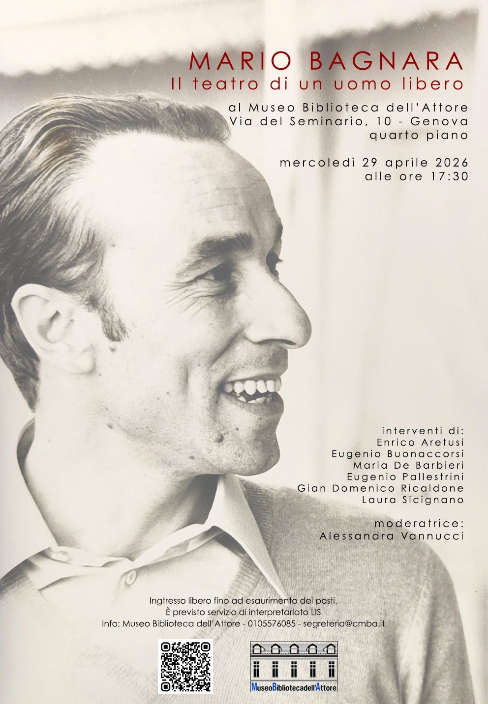 Mercoledì 29 aprile 2026 alle ore 17.30, presso il Museo Biblioteca dell’Attore, si terrà l’incontro Mario Bagnara. Il teatro di un uomo libero, dedicato alla figura del drammaturgo genovese. Autore,… Leggi tutto: Mario Bagnara. Il teatro di un uomo libero - Le donne di Brecht. Musica e parole nel teatro brechtiano