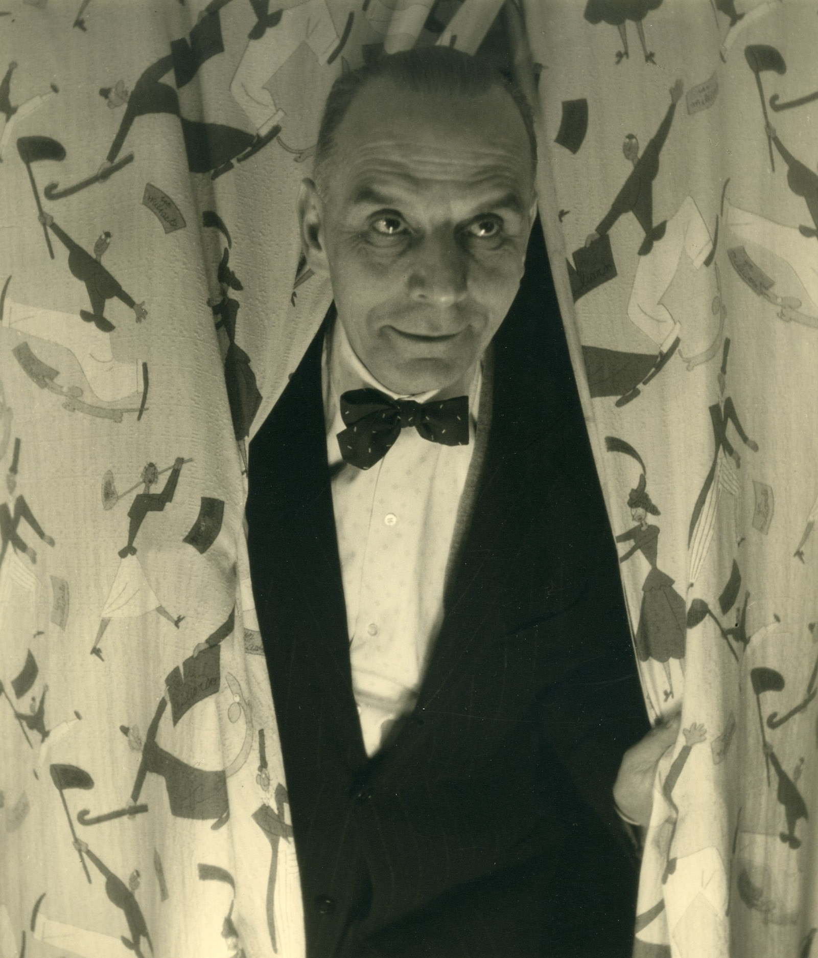 Sergio Tofano in camerino con la tenda del signor Bonaventura