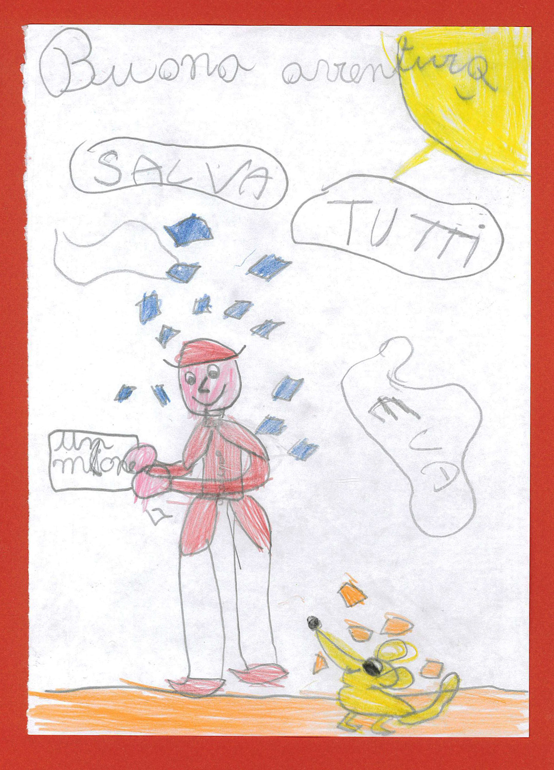 Il disegno di Eva della seconda elementare del Convitto Colombo dopo la visita al Museo.